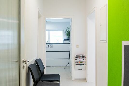 Unser Eingang zur Praxis befindet sich hinter dem Haus (bitte den Schildern folgen).